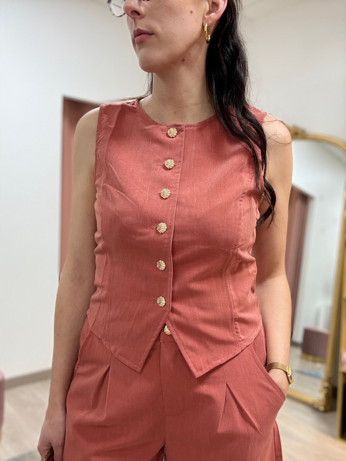 Haut ultra chic avec boutonnage sur le devant en forme de coquillage