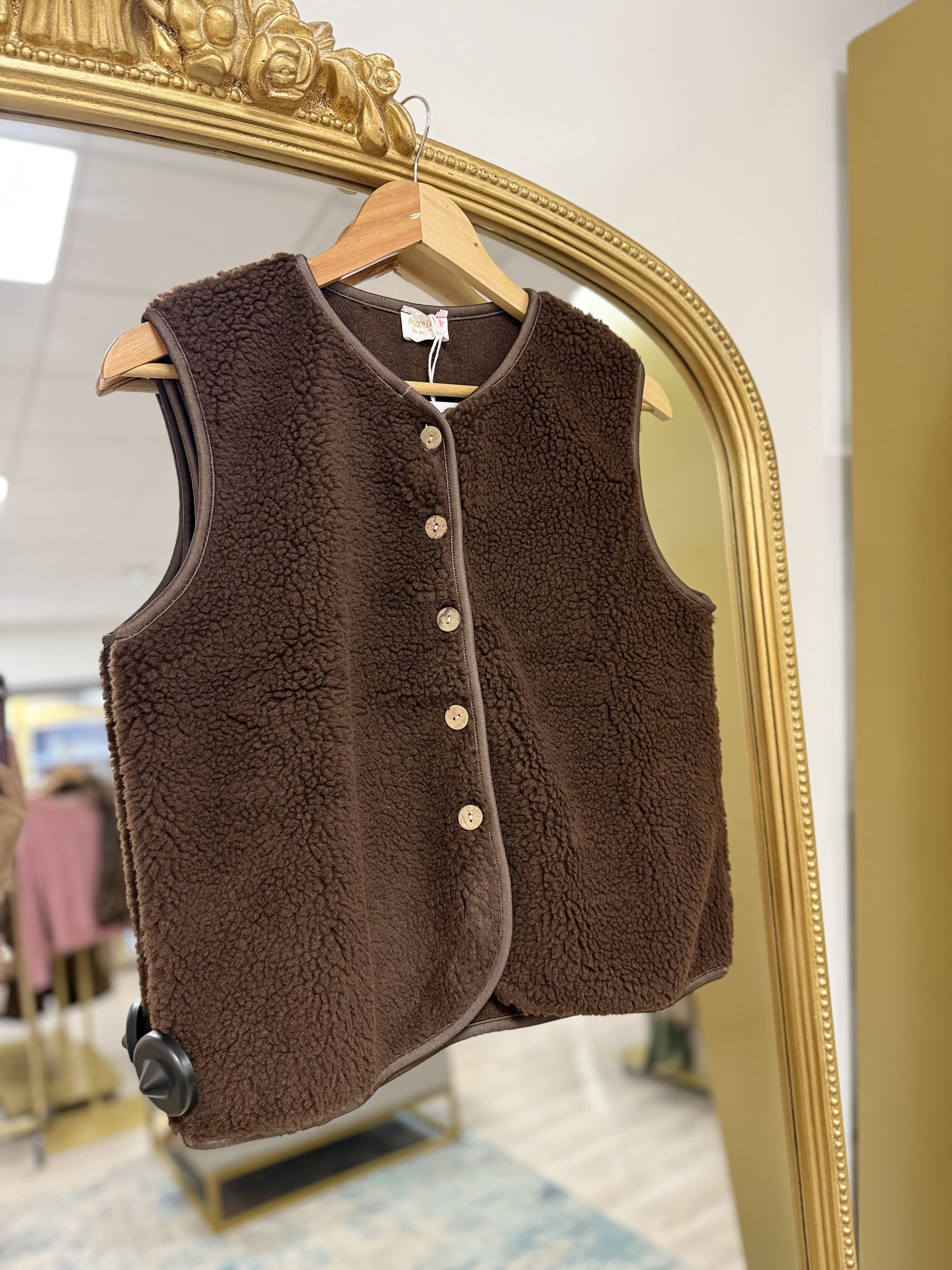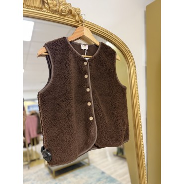 Gilet sans manches en moumoute, idéale pour réchauffer vos tenues avec confort et élégance. On aime sa texture toute douce et son esprit cocooning qui apporte une touche tendance et chaleureuse à votre tenue.